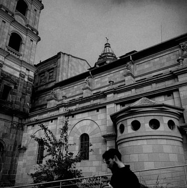 A foto foi registrada em Santo Ângelo, RS, e retrata uma das igrejas dos Sete Povos das Missões Jesuíticas. A imagem expressa a força da história e da cultura que resistem ao tempo, unindo o peso da arquitetura ao cotidiano do presente, representado pela figura humana masculina com uma cuia de chimarrão símbolo da identidade sulista. [...] A foto convida à contemplação silenciosa, revelando como o passado permanece vivo nas formas, nos rituais e na paisagem que nos cerca.