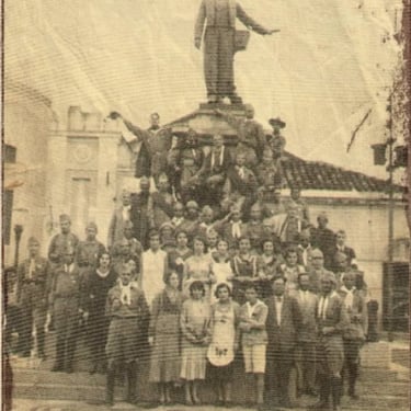 Escolhi esta imagem que retrata um importante momento histórico: voluntários, soldados, costureiros e cozinheiros reunidos durante a Revolução Constitucionalista de 1932, em frente ao túmulo do maestro e compositor Carlos Gomes, um dos grandes nomes da cultura brasileira.