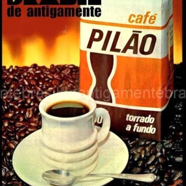 A foto antiga da propaganda do café mostra uma composição simples e com poucos elementos. Temos a utilização predominante de cores quentes e vibrantes. A regra dos três terços foi aplicada, centralizando o pacote de café e uma xícara com a bebida já pronta. O ângulo alto evidência a bebida preparada com aspecto de líquido quente. A escolha da foto da propaganda de café antiga se deu para mostrar a evolução do produto que temos nos dias atuais, onde essa bebida deixou ser um mero alimento pertencente a primeira refeição do dia e passou a ter papel principal em vários momentos do cotidiano.