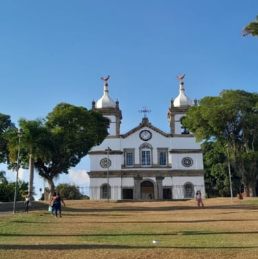 Além disso, a presença discreta de pessoas e carros sugere movimento e atualidade, aproximando a imagem da vivência cotidiana da comunidade. Essa escolha reforça a ideia de que a igreja é, ao mesmo tempo, um patrimônio histórico e um espaço vivo, em constante diálogo com a cidade e com seu povo.