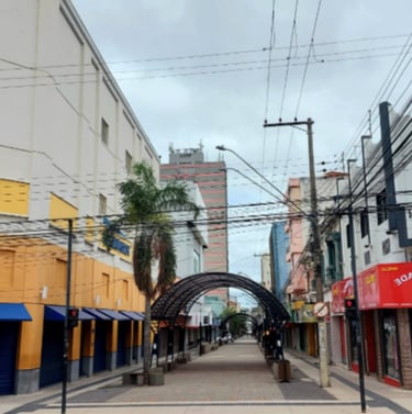 Já na segunda foto, retrata os dias atuais, onde já podemos identificar construções mais modernas, alinhadas, o uso das cores para atrair a atenção do cliente. Resolvi tirar a foto quase do mesmo ângulo para dar ênfase na poluição visual que os fios de energia causam.