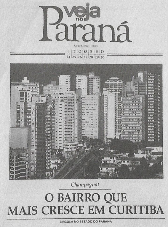 Na recriação da capa da revista veja no Paraná, recriei a estética, realcei a vitalidade urbana dando cor e iluminação. A versão antiga transmite ideia documental e distante. A versão recriada traz cores quentes e iluminação suave, criando uma atmosfera contemporânea. Essa escolha valoriza a arquitetura e destaca o bairro de forma positiva e vibrante. O contraste de tons ressalta o crescimento urbano sem perder a identidade local.