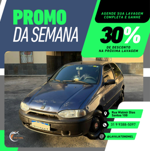 Imagem original Reproduzi "Escolhi a campanha do lavajato do meu bairro por ser um serviço muito presente no cotidiano da comunidade. A peça original trazia um carro como destaque, mas em um enquadramento simples e pouco atrativo. Na minha recriação, utilizei uma fotografia feita por mim, explorando a iluminação natural e o reflexo da lataria para transmitir sensação de cuidado e limpeza. Além disso, desenvolvi a identidade visual, incluindo a criação da logomarca, e modernizei o layout com cores vibrantes e tipografia de impacto, reforçando a clareza da mensagem promocional. Dessa forma, consegui unir a identidade local com um olhar publicitário mais atual e atrativo.