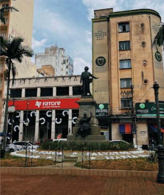 Coincidentemente o ângulo das duas fotografias estão quase parecidas e não foi nada combinado! A mais atual foi capturada pelo celular iPhone 11, padrão da foto colorida. Nota-se carros estacionados, rua asfaltada, calçada, céu azul e a sombra de uma pessoa. Segundo informações colhidas (aluna), o cidadão que capturou a foto não tinha experiência, pois foi um popular que estava caminhando pela cidade.